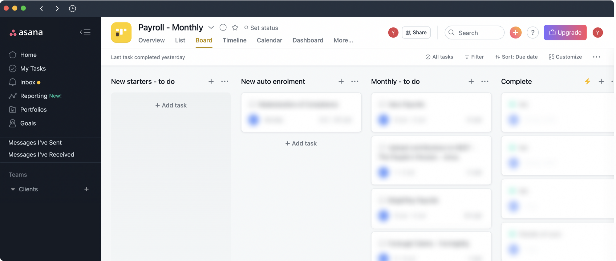 Each client we work with comes with about 50 deadlines per year. We use Asana to manage these tasks and deadlines. Every client has it’s own little space where we define recurring tax returns and one-off tasks. Each task has it’s own chatbox so it’s easy to keep track of our multi-threaded discussions. We colloborate, get things done, and we don’t miss deadlines.